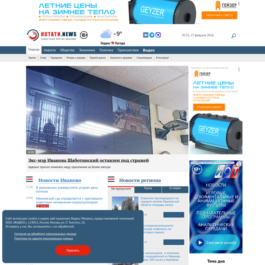 НОВОСТИ: Ивановская область, город Иваново Ивановская область в новостях в категории: основные рубрики и общие темыПоследние новости от kstati.newsАльтернативная лента новостейЗапасная лента новостей | ||