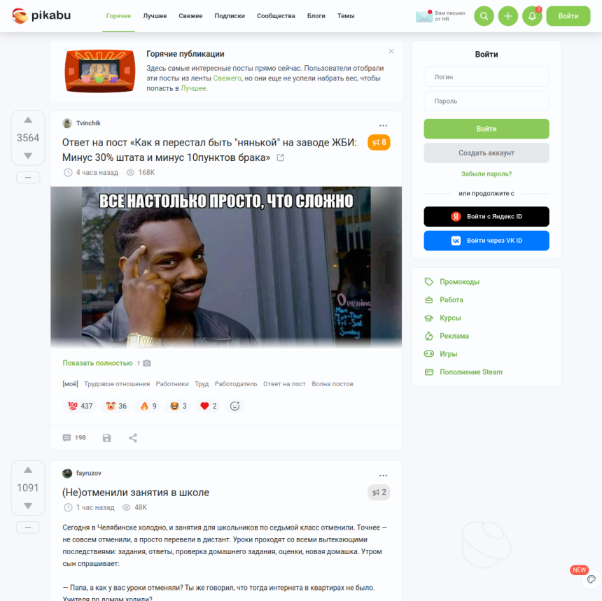 НОВОСТИ: Российская Федерация Вся Россия в новостях в категории: основные рубрики и общие темыПоследние новости от pikabu.ruАльтернативная лента новостейЗапасная лента новостей | ||