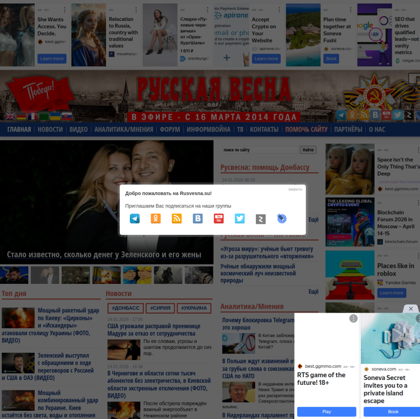 НОВОСТИ: Российская Федерация Вся Россия в новостях в категории: основные рубрики и общие темыПоследние новости от rusvesna.suАльтернативная лента новостейЗапасная лента новостей | ||